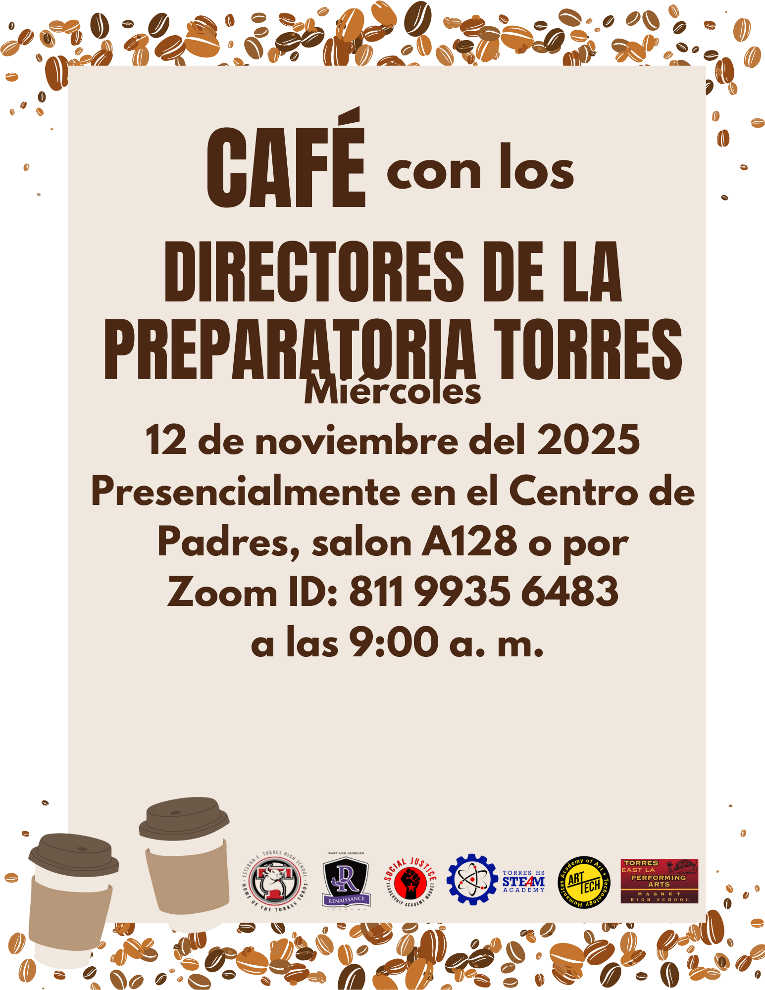 Coffee with the Principals Wednesday, November 12, 2025 at 9:00AM